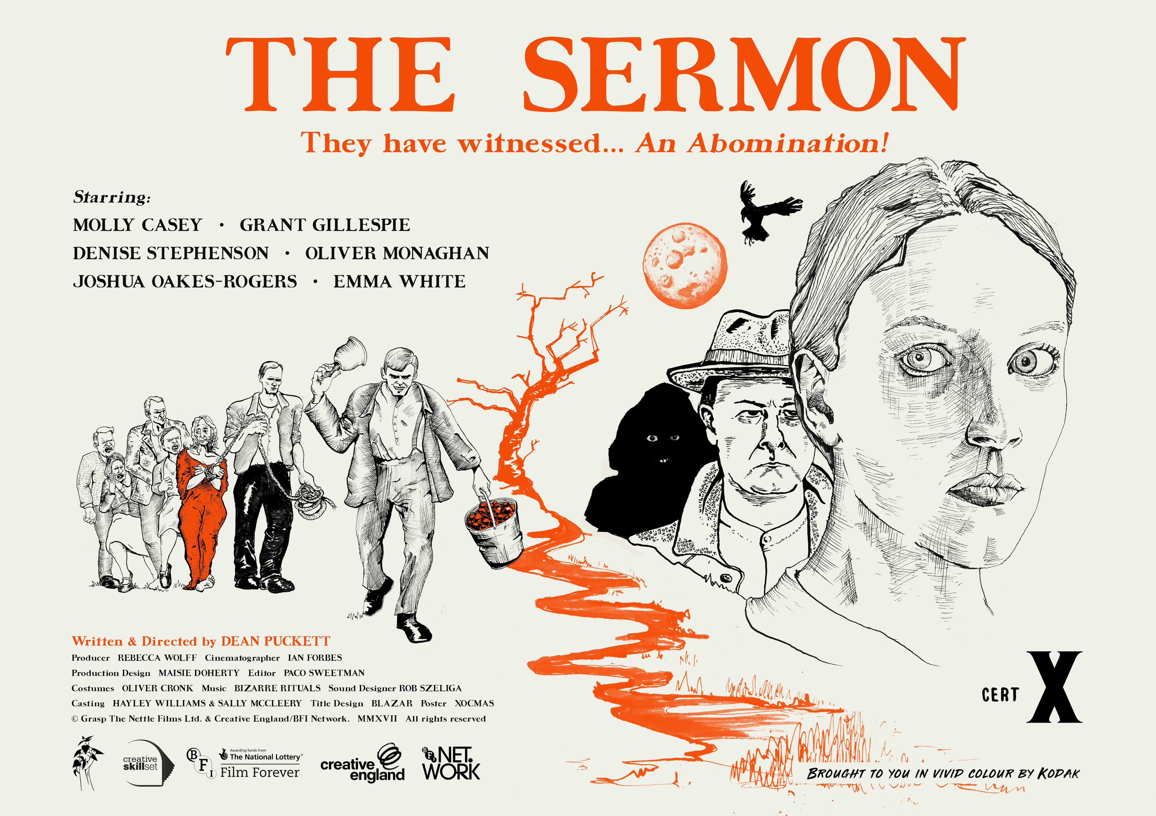 The Sermon is a short ‘Folk Horror’ dealing with sexuality, faith and oppression shot on 35mm film in the tradition of such films as 'The Wickerman' (Robin Hardy, 1973) , 'The Blood On Satan's Claw' ( Piers Haggard, 1971) & 'The Witchfinder General’ (Michael Reeves, 1968). These British films from the late Sixties and early Seventies that inspired me, have become known as the ‘Unholy Trinity’ and are characterized, in general, by isolated communities that have created their own societal rules often dominated by a strong male figure and ending with an explosive act of violence or a 'Happening'.